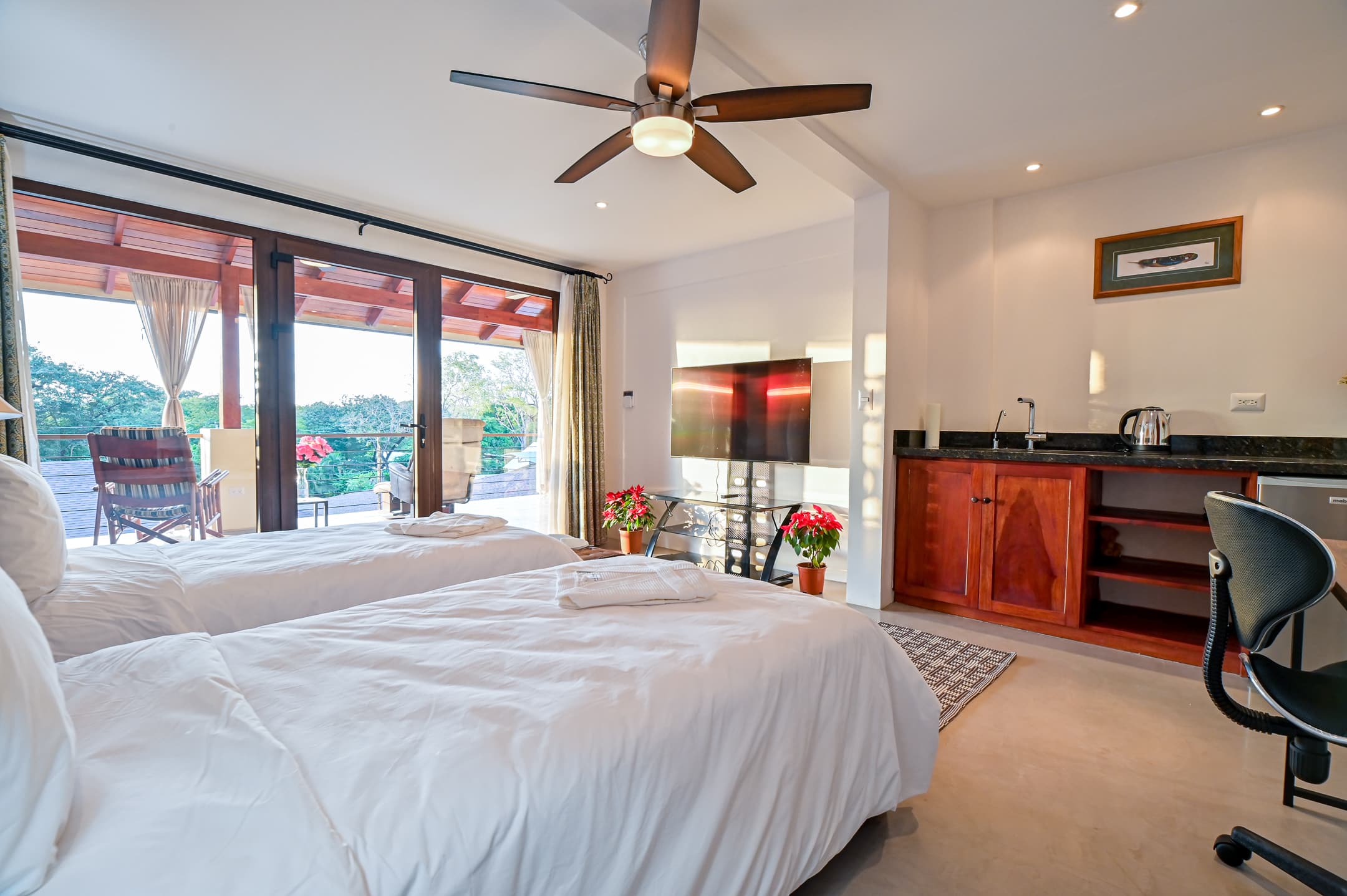 Each apartment features our hand selected decor, luxury linens, spacious bathroom and convenient kitchenette to make yourself feel at home on your Nosara vacation.